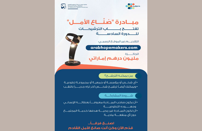وتستقبل الدورة السادسة من مبادرة "صناع الأمل" طلبات المشاركة والترشيح عبر الموقع arabhopemakers.com.