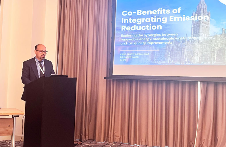 وتحدث الدكتور المهندس كايد عن المشاريع النوعية التي نفذتها بلدية عجمان ومن ضمنها استخدام شبكات مستشعرات IoT وتقنيات الذكاء الاصطناعي لمراقبة جودة الهواء بدقة عالية ليحقق مؤشر جودة الهواء ما نسبته 96.19% خلال النصف الأول من عام 2025، بالإضافة لانخفاض ملحوظ في ملوثات الهواء مثل PM2.5 وPM10 وأكاسيد النيتروجين والكبريت بنسبة 30% منذ عام 2020، وخفض انبعاثات قطاع الكهرباء والماء بنسبة 10% في 2023 مقارنة بعام 2022، بدعم من مشاريع الطاقة المتجددة مثل مشروع تحويل الحمأة إلى طاقة، واستخدام الطاقة الشمسية.