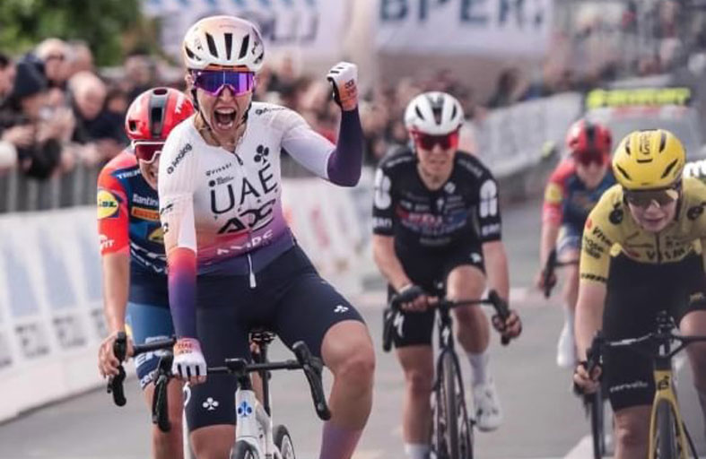 أحرزت سيلفيا بيرسيكو لاعبة فريق الإمارات القابضة للدراجات الهوائية للسيدات المركز الأول، في سباق جيرو ديلابينينو دونه، الذي تم تنظيمه أمس الأول في إيطاليا، وهو الانتصار الأول لها مع الفريق خلال الموسم الحالي. وأقيم السباق لمسافة 111 كم من نوفي ليغوري إلى جنوة.