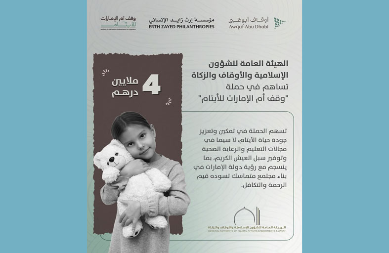 «الشؤون الإسلامية« تساهم بـ 4 ملايين درهم دعما لحملة «وقف أم الإمارات للأيتام»