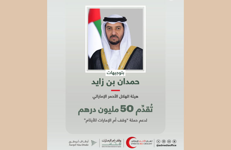 بتوجيهات سمو الشيخ حمدان بن زايد آل نهيان، ممثل الحاكم في منطقة الظفرة، رئيس هيئة الهلال الأحمر الإماراتي، قدمت الهيئة 50 مليون درهم لدعم حملة "وقف أم الإمارات للأيتام" التي أطلقتها هيئة الأوقاف وإدارة أموال القُصَّر - أوقاف أبوظبي، برعاية صاحب السمو الشيخ محمد بن زايد آل نهيان، رئيس الدولة، حفظه الله، في خطوة ترسخ ثقافة العطاء التي أرسى دعائمها الوالد المؤسِّس، المغفور له الشيخ زايد بن سلطان آل نهيان، طيب الله ثراه، وتعزز ريادة الإمارات في مجال العمل الإنساني عالمياً.
