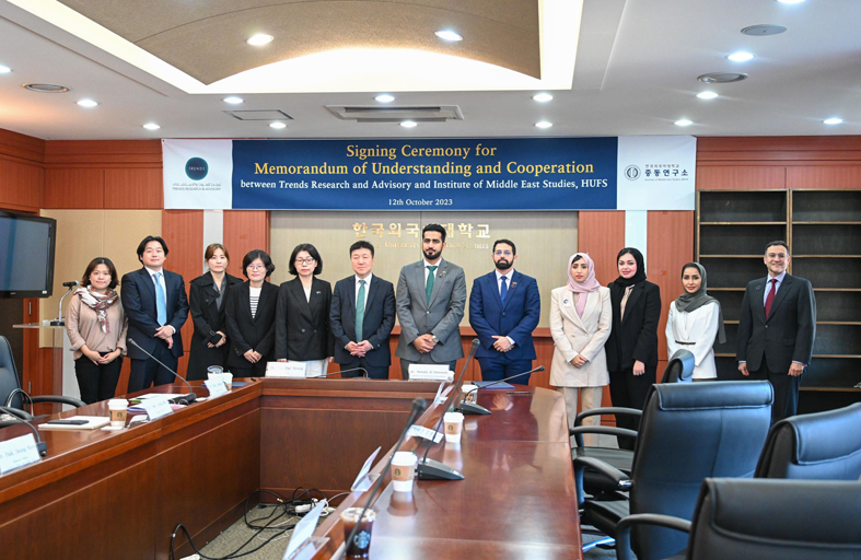 وقع مركز تريندز للبحوث والاستشارات، مذكرة تعاون مع معهد دراسات الشرق الأوسط، بجامعة هانكوك للدراسات الأجنبية (HUFS)، بهدف الاستفادة من الخبراء والخبرات المتراكمة لدى الجانبين في المجالات البحثية والعلمية، والتدريب والتطوير، إضافة إلى تعزيز التعاون المشترك بين الطرفين، وترجمته إلى مؤتمرات وملتقيات وندوات دولية مشتركة.