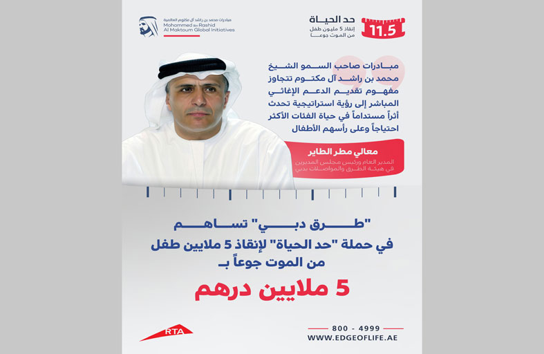 «طرق دبي» تساهم في حملة «حد الحياة» لإنقاذ 5 ملايين طفل من الموت جوعاً بـ 5 ملايين درهم
