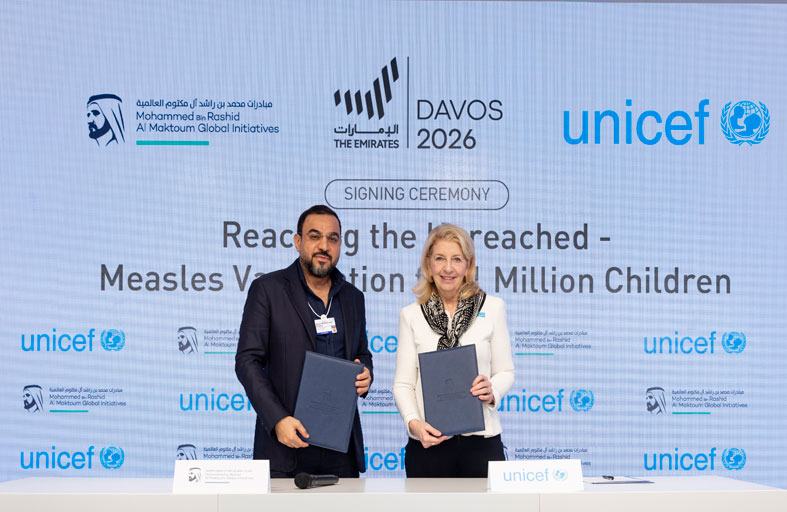 ووقع سعادة سعيد العطر المدير التنفيذي لمؤسسة "مبادرات محمد بن راشد آل مكتوم العالمية"، وكاثرين راسل المديرة التنفيذية لمنظمة الأمم المتحدة للطفولة "اليونيسف" خطاب نوايا بالشراكة بين الجانبين، تدعم بموجبه مؤسسة المبادرات "اليونيسف"، لتنفيذ برامج تطعيم شاملة ضد مرض الحصبة يستفيد منها مليون طفل.