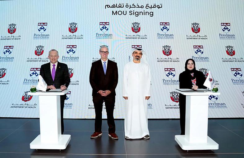 وقعت دائرة الصحة – أبوظبي مذكرة تفاهم مع كلية بيرلمان للطب بن ميدسين في جامعة بنسلفانيا الأمريكية لتعزيز التعاون المشترك في مجالات التعليم والأبحاث وبرامج الابتكار. يأتي ذلك تماشياً مع جهود الدائرة المتواصلة لدعم الابتكار في الإمارة حيث سيعمل الطرفان على تطوير منظومة علوم الحياة للوصول لطرق علاج مبتكرة واكتشافات علمية جديدة. وتواصل الدائرة جهودها للتعاون مع الشركاء الاستراتيجيين للارتقاء بجودة مخرجات منظومة الرعاية الصحية وذلك في ظل التطور الذي يشهده قطاع الرعاية الصحية في أبوظبي .