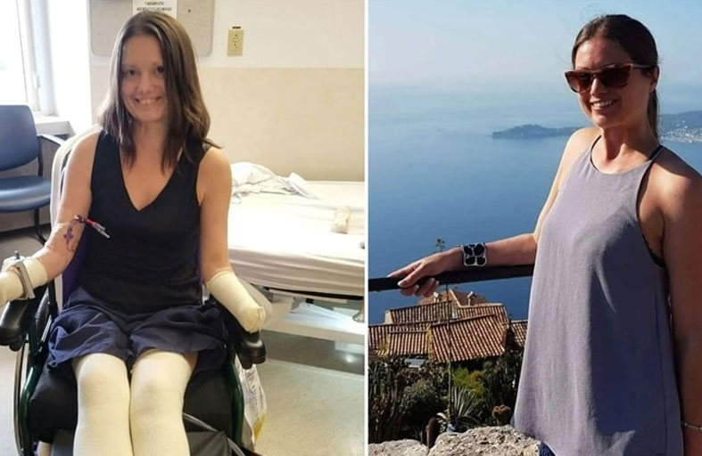 آلام خفيفة في الفك والرقبة حولت حياة امرأة كندية إلى مأساة صحية بعد أن تطورت إلى عدوى خطيرة في الدم، أجبرتها على بتر أطرافها الأربعة. أُصيبت جين هايلي، 41 عاماً، من مقاطعة ألبرتا الكندية، بالتهاب الحلق العقدي، وتلقت حينها كورساً كاملاً من المضادات الحيوية لمدة بين 7 و10 أيام، وشعرت بتحسن طبيعي بعدها، لكن بعد أيام بدأت تعاني من آلام في الفك والخد والجانب الأيسر من رقبتها، ظنَّت أنها أعراض عدوى عابرة أو مجرد تورم في الغدد، قبل أن تتصل بخط الاستشارة الطبية، حيث طُلب منها على الفور الاتصال بالإسعاف، وفقاً لصحيفة "ذا صن" البريطانية. ونُقلت جين إلى المستشفى، حيث انخفض ضغط دمها ومعدل ضربات قلبها بشكل حاد، وأدخلت العناية المركزة في غيبوبة طبية. وبعد الفحوصات، اكتشف الأطباء إصابتها ببكتيريا المكورات العقدية من المجموعة (A)، والتي تطورت إلى متلازمة الصدمة السمية الإنتانية، وهي حالة نادرة، لكنها شديدة الخطورة، تحدث عندما تطلق البكتيريا سموماً في مجرى الدم، وتؤدي إلى استجابة التهابية مدمرة قد تسبب فشلاً عضوياً أو الوفاة. وبسبب التلف الواسع في الأنسجة وخطر فشل الأعضاء المتعددة، أبلغ الأطباء جين بضرورة بتر أطرافها الأربعة لإنقاذ حياتها. وأظهرت صور صادمة اسوداد يديها وقدميها بشكل كامل نتيجة موت الأنسجة، حيث تحولت إلى لون داكن متفحم، مع تشقق الجلد وتكوّن ما وصفته جين بـ"الحفر العميقة".