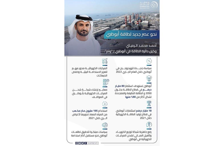 وقال الرميثي : مع تشغيل مزيد من مشاريع الطاقة المتجددة مستقبلاً مثل مشروع الظفرة للطاقة الشمسية الكهروضوئية بقدرة إنتاجية تبلغ 2 جيجاواط بالإضافة إلى تشغيل محطات براكة بالكامل، فمن المتوقع بحلول عام 2025 أن تصل نسبة الطاقة المولدة من المصادر المتجددة إلى 7%، وبنسبة 47% من مصادر الطاقة النظيفة من خلال الطاقة النووية .. ويستمر التحوّل نحو مصادر الطاقة المتجددة والتقليدية الأكثر كفاءة في أبوظبي وذلك تماشياً مع المستهدفات الوطنية والحكومية في قطاع الطاقة ومساهمة إمارة أبوظبي في المبادرة الإستراتيجية الوطنية لتحقيق الحياد المناخي بحلول 2050.