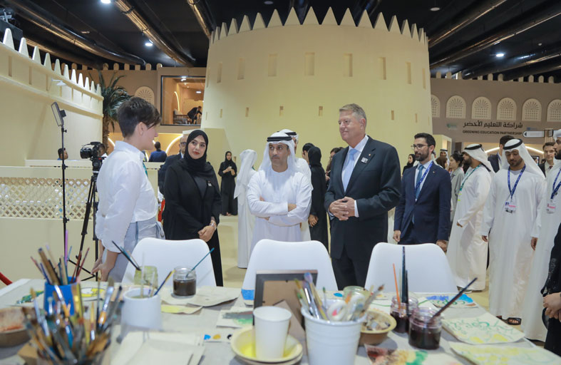 التقى معالي الدكتور أحمد بن عبد الله حميد بالهول الفلاسي وزير التربية والتعليم ، فخامة كلاوس يوهانيس رئيس رومانيا خلال زيارته مركز التعليم الأخضر – إرث من أرض زايد في مؤتمر « COP28». وتم خلال اللقاء، الذي حضره كبار المسؤولين من الجانبين، بحث سبل تعزيز التعاون المشترك بين دولة الإمارات ورومانيا في المجال التعليمي، وضرورة التركيز على تضمين الاستدامة والتعليم المناخي ضمن النظم التعليمية، وذلك في إطار التزام دولة الإمارات بمد جسور الشراكات مع الدول والهيئات كافة ذات العلاقة لبناء مستقبل مستدام للأجيال القادمة. واصطحب معالي الدكتور الفلاسي، فخامة الرئيس يوهانيس بجولة في مركز التعليم الأخضر، أكد معاليه خلالها حرص دولة الإمارات على أن يوفر المركز منصة لبحث أفضل السبل لتعزيز مساهمة التعليم في مواجهة التحديات المناخية من خلال زيادة والوعي وتغيير السلوكيات على المستويات الفردية والمجتمعية، مشيراً إلى أن المركز سيترك إرثاً مستداماً يمكن لمؤتمرات الأطراف المقبلة البناء عليه وتعميمه. وشملت الجولة مختلف الأنشطة والتجارب التفاعلية التي يقدمها المركز لزواره.