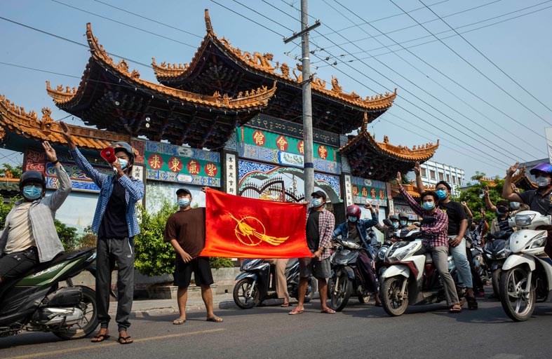 ونزلت الاثنين مجموعات صغيرة من المحتجّين إلى الشوارع في كل أنحاء البلاد، حاملين لافتات كُتب عليها “أفرجوا عن قادتنا” ورافعين الأعلام الحمر التي ترمز إلى حزب أونغ سان سو تشي، الرابطة الوطنية من أجل الديموقراطية.