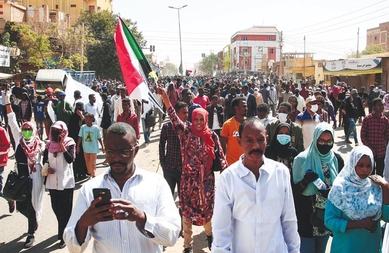 وتجمع عشرات الآلاف من السودانيين في الميادين والشوارع الرئيسية في العاصمة الخرطوم وأكثر من 20 مدينة أخرى مواصلين احتجاجاتهم المستمرة منذ 25 أكتوبر رفضا للحكم العسكري والتي قتل فيها حتى الآن نحو 78 شخصا.