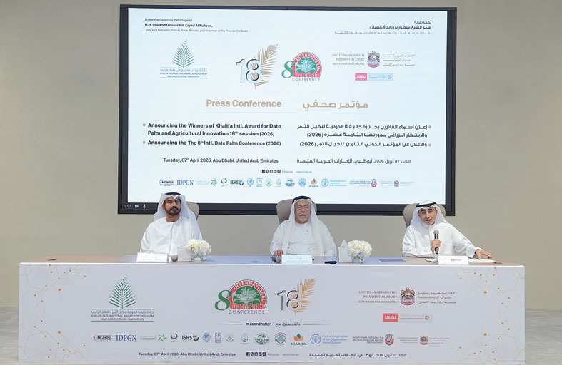 إعلان أسماء الفائزين بجائزة خليفة الدولية لنخيل التمر والابتكار الزراعي بدورتها الثامنة عشرة 2026 وإطلاق المؤتمر الدولي الثامن لنخيل التمر