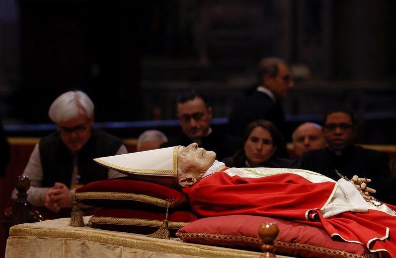 إلقاء النظرة الأخيرة على جثمان البابا بنديكتوس في روما