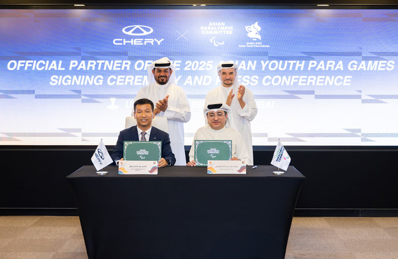 وقعت اللجنة البارالمبية الآسيوية اتفاقية شراكة مع شركة "شيري الدولية" لدعم دورة الألعاب البارالمبية الآسيوية للشباب "دبي 2025"، وتعزيز الحركة البارالمبية في القارة من خلال حلول ذكية تسهم في تحسين جودة حياة أصحاب الهمم.