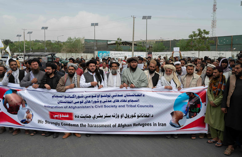 وتظاهر عشرات الأشخاص، الثلاثاء الماضي، في ساحة بوسط العاصمة الأفغانية كابل للتنديد بإيران بعد انتشار مقاطع فيديو قيل إنها لإيرانيين يضربون لاجئين أفغان. ووفق وكالة "فرانس برس" فإنه رغم أن طالبان تحظر المظاهرات العامة فإن هذا الاحتجاج حصل على تصريح وجرى تحت رقابة أمنية.
