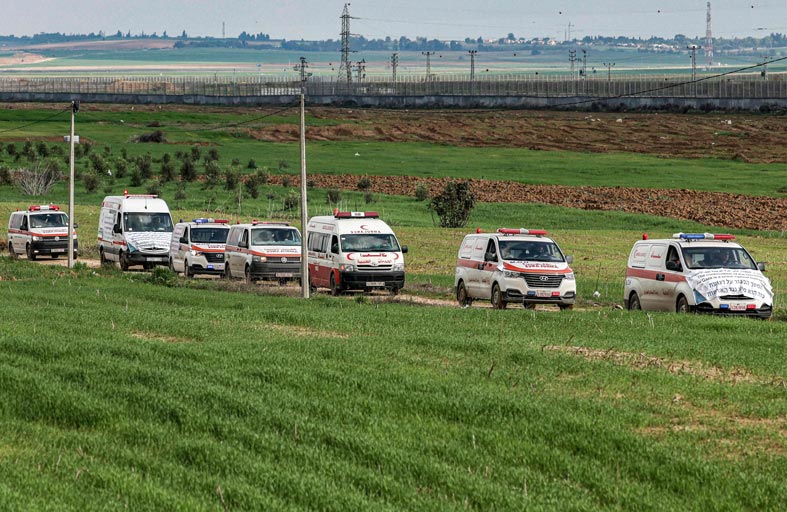 وصل المسعفون إلى الحدود الشرقية لمدينة غزة في قافلة من نحو 25 سيارة إسعاف. وقال المتحدث باسم وزارة الصحة الفلسطينية في القطاع أشرف القدرة، إن السلطات الإسرائيلية تمنع إدخال أربعة أجهزة أشعة سينية متحركة تتيح تشخيص أمراض العظام والكسور، وجهاز قثطرة لمرضى الجلطات وجهاز أشعة وتصوير مرضى العناية المكثفة. وحذر القدرة أن الإجراءات الإسرائيلية “تعرض مرضى الأورام السرطانية والقلب والجلطات والكسور المعقدة والعناية المركزة لمخاطر صحية” ناهيك عن منع إدخال قطع غيار الأجهزة المتعطلة.