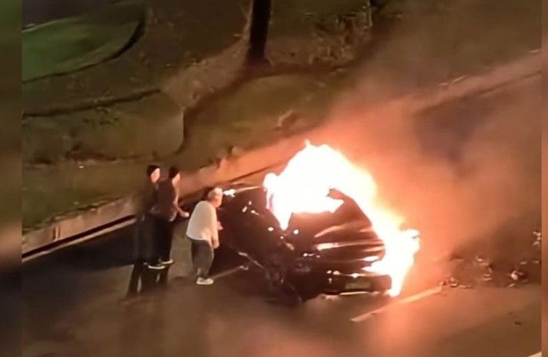 وأظهرت مقاطع مصوّرة انتشرت على وسائل التواصل الاجتماعي ألسنة اللهب وهي تبتلع السيارة بينما حاول عدد من المارة تحطيم النوافذ لإنقاذ السائق، لكن دون جدوى. وأكد أحد الشهود لصحيفة "ذا بيبر" المحلية، أن "أربعة أو خمسة أشخاص حاولوا كسر الزجاج بأيديهم، وأصيب أحدهم بجروح خطيرة، إلا أن الأبواب المغلقة إلكترونياً حالت دون إخراج السائق قبل أن تلتهمه النيران". وأضاف الشاهد أن فرق الإطفاء وصلت بعد دقائق قليلة واستخدمت معدات لقطع الهيكل المعدني، "لكن السائق كان قد فارق الحياة قبل الوصول إليه".