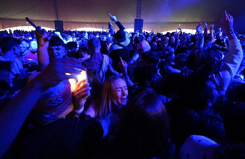 احتشد خمسة آلاف شخص دون وضع كمامات ولا التزام التباعد الاجتماعي واستمتعواً غناءً ورقصاً ضمن مهرجان موسيقي أقيم في شمال إنجلترا الأحد شكّل أول حفلة موسيقية حضورية يؤذن بها بعد الحجر كنشاط تجريبي.