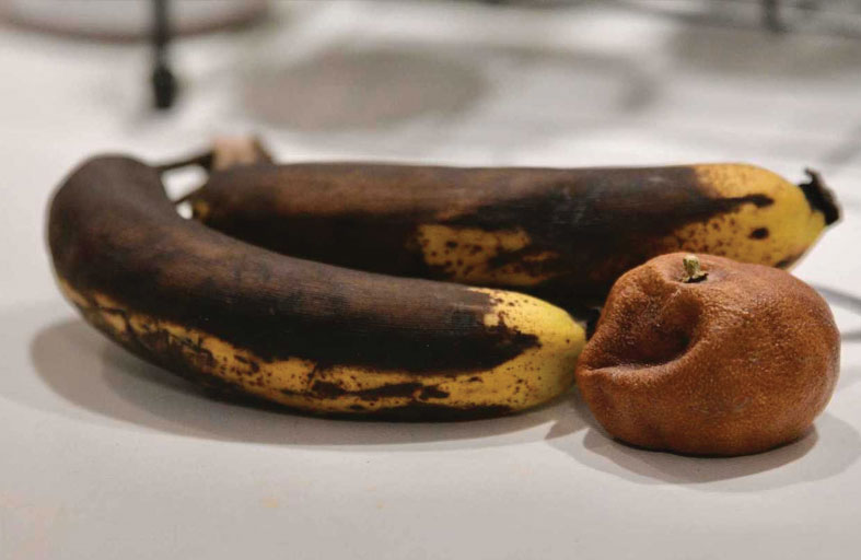 والفواكه أيضًا معرضة للعفن، مثل Penicillium expansum التي تصيب التفاح والكمثرى والكرز والخوخ، وتنتج سم الباتولين الذي يضر بالإنزيمات الرئيسية ويولد جزيئات ضارة قد تلحق الضرر بالحمض النووي والبروتينات والدهون. على الرغم من الرغبة في إزالة الأجزاء المتعفنة، فإن الفطريات غالبًا ما تخترق العمق، ما يجعل الفاكهة بأكملها غير آمنة، خصوصًا الفواكه الطرية.
