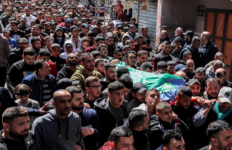 وفي جنين سار مشيعون في شوارع المدينة خلال جنازة الفلسطينيين الخمسة الآخرين الذين قتلوا الثلاثاء وهم جميعا في العشرين من العمر.