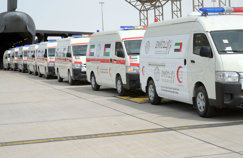 أرسلت دولة الإمارات العربية المتحدة سيارات إسعاف مجهزة بالمعدات كافة إلى مدينة العريش المصرية تمهيداً لدخولها إلى قطاع غزة وذلك ضمن جهود الدولة من خلال عملية الفارس الشهم 3 لدعم متطلبات القطاع الصحية.