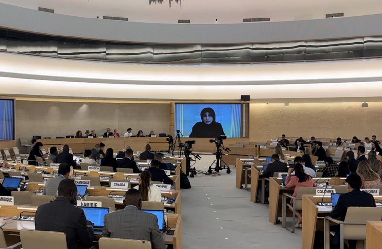 جاء ذلك في بيان شفهي ألقتها أمام مجلس حقوق الإنسان الدكتورة فاطمة خليفة الكعبي رئيس جمعية الاتحاد لحقوق الإنسان، في الاجتماع الثاني عشر ضمن أجندة اجتماعات المجلس في إطار النقاش التفاعلي الخاص بـ "استقلال القضاة والمحامين"، المتعلق بالبند الثالث من أجندة الدورة الـ"56" المنعقدة في قصر الأمم المتحدة لحقوق الإنسان في جنيف.