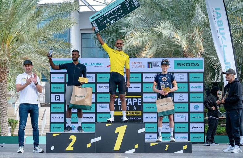 وحضر مراسم التتويج سعيد حارب، أمين عام مجلس دبي الرياضي، ولوكاش هونزاك، المدير التنفيذي لدى شكودا الشرق الأوسط، وأنطوان كويرس، مدير مشروع سلسلة "لي تاب" في شركة ASO، الجهة المنظمة لطواف فرنسا.