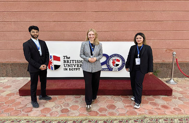ومن جانبهم، قال الطلاب المشاركون في برنامج محاكاة قمة المناخ كوب 30: "تمثل المشاركة في البرنامج بالجامعة البريطانية في القاهرة مصدر إلهام كبير وتجربة استثنائية لنا. وساعدنا التواصل مع طلاب من أكثر من 90 جامعة يمثلون الدول حول العالم على التفكير بشكل نقديّ والتعاون عبر الثقافات المتنوعة والمفاوضة بشكل مؤثر وفعال في ما يتعلق بالقضايا المناخية المعقدة. وتطلبت هذه التجربة التزاماً عميقاً وبحثاً واسعاً، بالإضافة إلى عمل جماعي قوي وجلسات حوارية طويلة. وقد ساعدتنا على صقل مهارات التواصل والتفاوض لدينا، وساهمت في إثراء منظورنا العالمي، وعمّقت مستوى فهمنا لسياسات المناخ العالمية. والأهم من ذلك، عززت التزامنا بالمساهمة في العمل المناخي الفعال لبناء مستقبل أكثر استدامة".