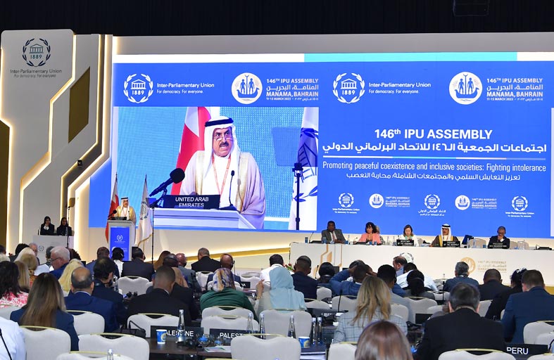 وأشار معاليه إلى "وثيقة الأخوة الإنسانية " التي تم توقيعُها في الإماراتِ 4 فبراير 2019، والذي بناءً عليه اعتمدتْ الجمعيةُ العامةُ للأممِ المتحدةِ قراراً بالإجماعِ باعتبار هذا التاريخ "اليوم الدولي للأخوة الإنسانية،"، تأكيداً على إرساءِ قواعدَ جديدة تقومُ على احترامِ الاختلافِ، وإعلاءِ قيمِ التعاونِ المتبادلِ، وتجريمِ إكراهِ الناسِ على ثقافةٍ معينةٍ، أو فرضِ أسلوبٍ حضاريٍ لا يقبلهُ الآخر. جاء ذلك في كلمة معاليه، أمام الجمعية العامة الـ 146 للاتحاد البرلماني الدولي، المنعقدة في مملكة البحرين خلال الفترة من 11 إلى 15 مارس الحالي، حيث تنعقد أعمال الجمعية لبحث موضوع ""تعزيز التعايش السلمي والمجتمعات الشاملة: مكافحة التعصب" بمشاركة ورؤساء البرلمانات وأكثر من 1700 برلماني يمثلون اكثر برلمانات العالم. ووفد الشعبة البرلمانية الامارتية وعدد من المنظمات الدولية.