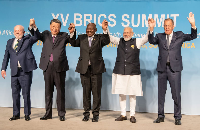 إن التوسع الأخير لمجموعة البريكس ، البرازيل وروسيا والهند والصين وجنوب أفريقيا ،  لتشمل إيران والأرجنتين ومصر وإثيوبيا والمملكة العربية السعودية والإمارات العربية المتحدة من شأنه أن يوضح «حركة هائلة لإعادة التوازن» في مواجهة «الهيمنة الغربية». «، بحسب بيانها الصحفي. وهناك خمسة عشر بلداً، من إندونيسيا إلى الجزائر أو نيجيريا، تنتظر على عتبة النادي.