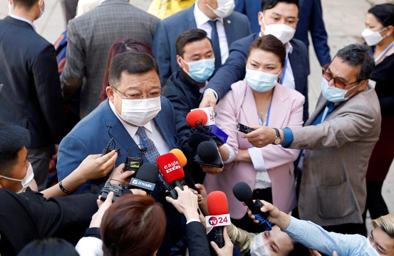 وأعلن رئيس الوزراء السابق خوريلسوخ أوخنا فوزه في الانتخابات بحوالي سبعين بالمئة من الأصوات، بعد خمسة أشهر من اضطراره للتنحي عن منصبه كرئيس للحكومة على أثر فضيحة بشأن الإجراءات الصارمة لمكافحة الوباء في هذا البلد الواقع بين الصين وروسيا ولا منفذ له على البحر.