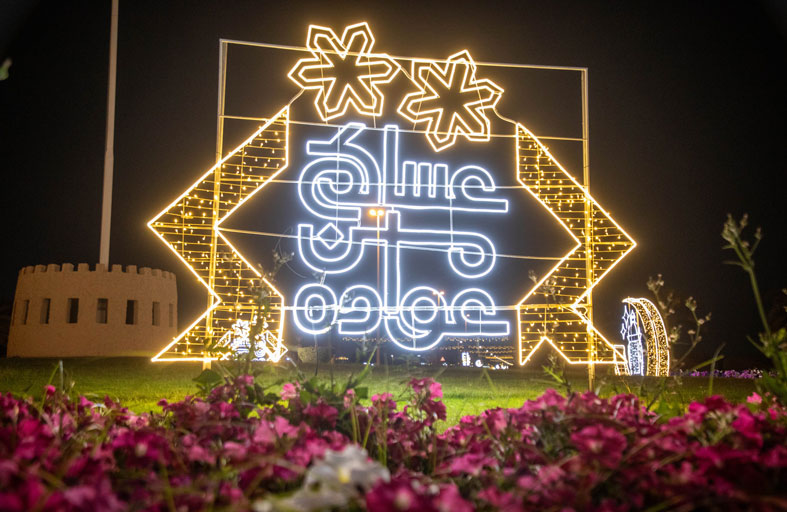 وتزينت الميادين والطرق بعبارات تهنئة مضيئة حملت كلمات معبرة مثل “عيد سعيد” و“عساكم من عواده”، إلى جانب أشكال هندسية وزخارف فنية مبتكرة، جسدت في مجموعها مشهداً بصرياً متكاملاً يعكس البهجة ويعزز من جمالية الفضاء الحضري، فيما حرصت الفرق الفنية على توزيع الإضاءات بشكل متوازن يغطي مختلف المواقع الحيوية.