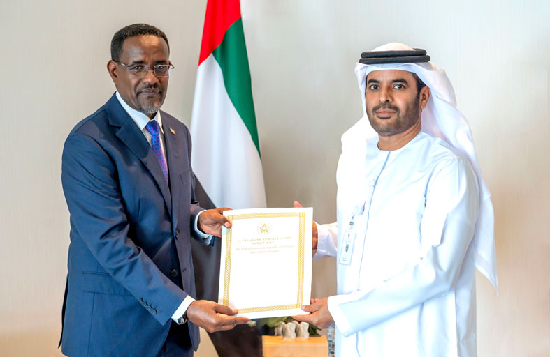 تسلّم سعادة سيف عبدالله الشامسي، وكيل وزارة مساعد لشؤون المراسم في وزارة الخارجية والتعاون الدولي نسخة من أوراق اعتماد سعادة عمر حسين أوبا، سفير جمهورية إثيوبيا الفيدرالية الديمقراطية لدى الدولة في ديوان عام الوزارة. وتمنّى الوكيل المساعد للسفير التوفيق والنجاح في أداء مهام عمله بما يعزز علاقات التعاون الوثيقة بين دولة الإمارات وبلاده. من جانبه أعرب السفير الإثيوبي الجديد عن سعادته بتمثيل بلاده لدى دولة الإمارات لما تحظى به من مكانة إقليمية ودولية مرموقة في ظلّ السياسة الحكيمة لصاحب السمو الشيخ محمد بن زايد آل نهيان رئيس الدولة "حفظه الله".