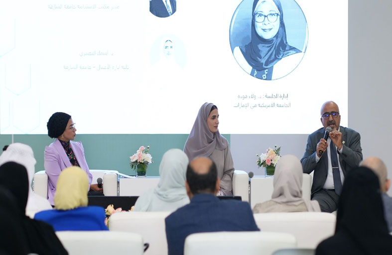 واستهل الملتقى يومه الثاني بجلسة بعنوان “البيئة المعرفية الخضراء ومفهوم الاستدامة” وشارك فيها الدكتور عماد السيوف، مدير مكتب الاستدامة بجامعة الشارقة، والدكتورة أسماء النصيري، من قسم الإدارة بكلية إدارة الأعمال بجامعة الشارقة، وأدارتها الدكتورة ولاء فودة، استاذ مساعد الاعلام في الجامعة الامريكية في الامارات.