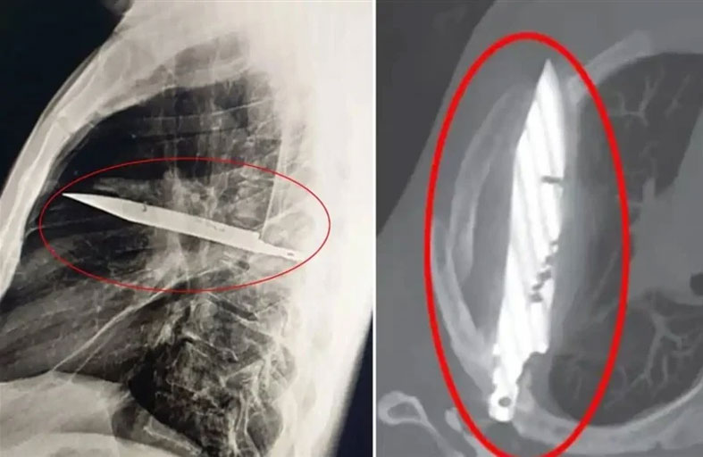 في واقعة طبية نادرة، عثر أطباء في تنزانيا على سكين ضخم مغروس في صدر رجل مُنذ نحو 8 سنوات، بعد أن توجه إلى المستشفى شاكياً من آلام وإفرازات غريبة بمنطقة الصدر. وقالت التقارير الطبية إن الرجل، البالغ من العمر 44 عاماً، لم يكن يعاني من أي أعراض أخرى لافتة، إذ لم يشكُ من صعوبة في التنفس أو الحمى، كما كانت علاماته الحيوية طبيعية، وفقً لصحيفة "ذا صن" البريطانية. لكن فحوصات الأشعة كشفت عن وجود شيء معدني كبير اخترق جسده عبر لوح كتفه الأيمن، واستقر على مسافة خطيرة من أعضائه الحيوية، دون أن يلحظ طوال هذه السنوات. وبحسب المريض، فقد تعرض لإصابات متعددة في الوجه والظهر والصدر والبطن خلال "مشاجرة عنيفة" قبل نحو عقد، وتلقى حينها علاجاً، لكنه لم يكن يعلم أن السكين بقي عالقاً داخل جسده. وأجرى الجراحون عملية دقيقة لاستخراج السكين وتصريف الصديد الناتج عن تلف الأنسجة، فيما قضى المريض 24 ساعة في العناية المركزة، ثم 10 أيام في الجناح العام، قبل أن يتعافى ويغادر المستشفى بحالة مستقرة.