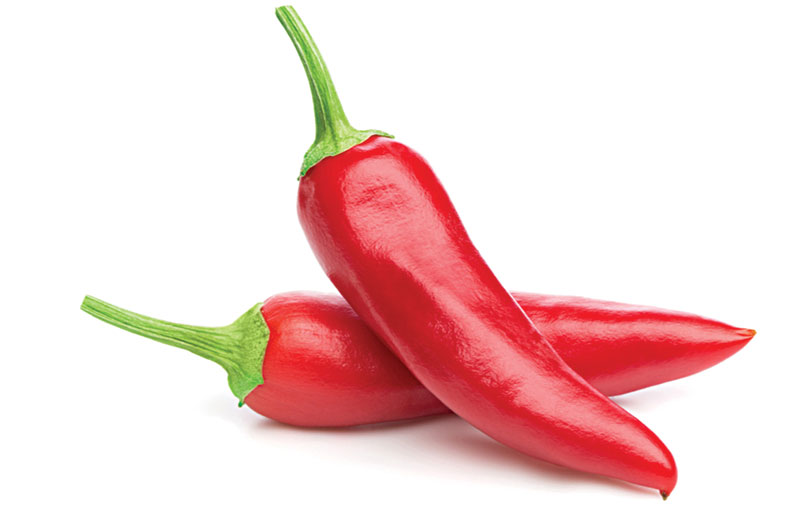 كذلك يحتوي الفلفل الحار على مادة (كابسيسين)، كما يحتوي الفلفل الأسود على مادة (بيبرين) وكلاهما يعملان على إفراز هرمون (الإندورفين) المعروف (بهرمون السعادة)، مما يساعد على تحسين المزاج واسترخاء الجسم.