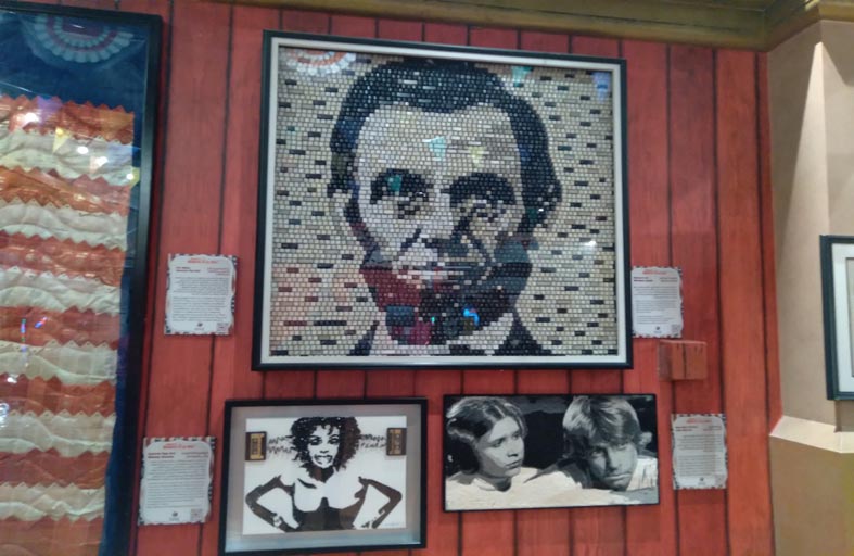 - والقسم الرابع المتحف الأمريكي.. ويضم معروضات من أمريكا مثل لوحة للرئيس الأمريكي الأسبق إبراهام لنكولن محرر العبيد صنعت من مفاتيح وأزرار الكميوتر, ولوحة للفنانة ويتني هويستون صنعت من أشرطة الكاسيت.. وأربعة أزياء صنعت من أوراق الصحف والمجلات وفلاتر القهوة ومن شعر الإنسان الطبيعي ومن علب البيبسي.. ودراجة نارية كبيرة مجنحة صنعت من الخشب, وأيضا نسر كبير مصنوع من الخشب..وأنواع مختلفة من العملات القديمة الأمريكية والأوروبية والأفريقية منها ما هو مصنوع من الجلد أو الخشب أو الحديد أو صدف البحر ومن الشاي.. ويوجد تمثال لأول رئيس الأمريكي جورج واشنطون مصنوع من الدولارات فئة المليون دولار التالفة والممزقة.. وألة موسيقية على شكل بجعة, وطبلة كانت تقدم كمهر للعروس في أندونيسيا, وزجاجات البارود, وخاتم لمحارب فارس عملاق.. وتمثال بانورامي من الورق المقوى المقطع والمثبت بطريقة تظهر صورة الفنان الأمريكي ألفيس بريسلي..