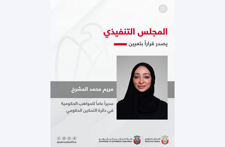 أصدر المجلس التنفيذي لإمارة أبوظبي قراراً بتعيين سعادة مريم محمد المشرخ مديراً عاماً للمواهب الحكومية في دائرة التمكين الحكومي.