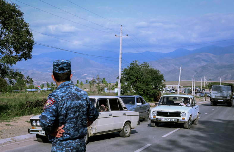 وفي بلدة كورندزور الحدودية الأرمينية، تجمّع المدنيون عند آخر نقطة تفتيش قبل الأراضي الأذرية، على أمل الحصول على أخبار عن أقاربهم.