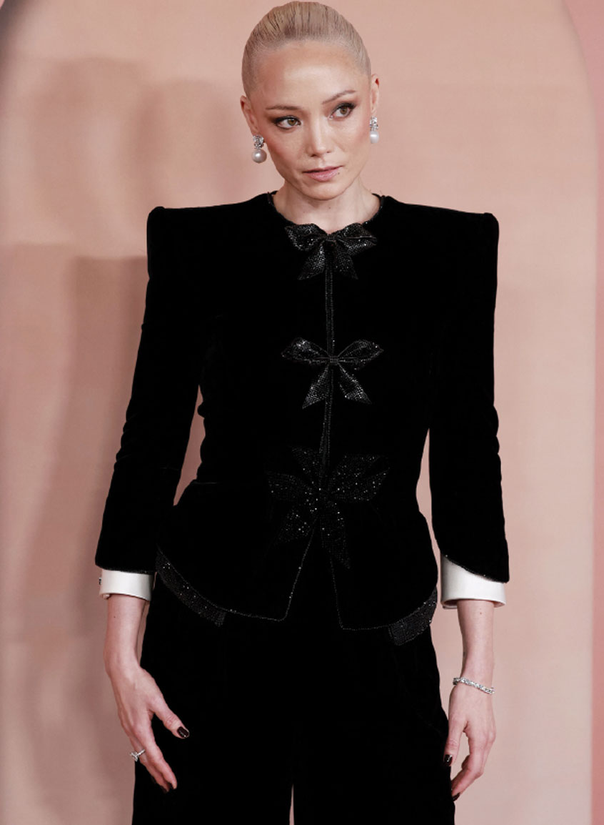 الممثلة الفرنسية بوم كليمينتيف لدى حضورها حفل فرانكا فاند غالا 2025 في متحف الفن الإسلامي في الدوحة. ا ف ب