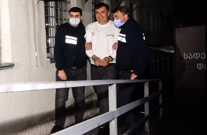 واعتُقل الإصلاحي المؤيد للغرب، الذي قاد عام 2003 “ثورة الورود” السلمية التي أطاحت بشخصيات نخبوية من الحقبة الشيوعية، بعد وقت قصير من وصوله على خلفية إدانته عام 2018 غيابيا بتهم تتعلّق باستغلال السلطة.