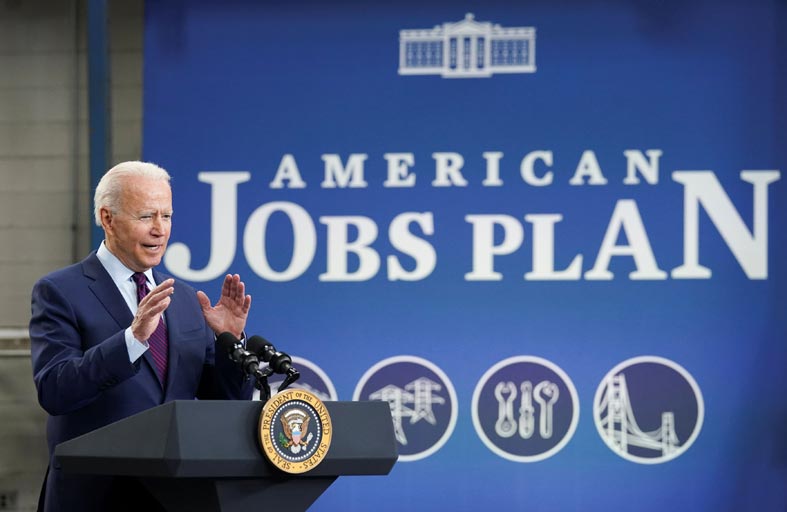 وقف الرئيس الأميركي جو بايدن في مستودع مليء بالآليات وزيت السيارات في ويسكونسن للترويج لخططه البالغة كلفتها تريليونات الدولارات، مشيرا إلى أن احتياجات بلاده تبدأ من الجسور وتصل إلى تحسين الإنترنت. وفيما قارن بين جهوده وبناء نظام الطرق السريعة بين الولايات الذي يربط أكبر قوة اقتصادية في العالم ببعضها البعض، أشار بايدن إلى أن “الحكومة وحدها هي القادرة على القيام بهذا النوع من الجهد». وشدد على أن “التحديث هو استثمار عبر الأجيال”، يهدف إلى “وضع أميركا في موقع تنافسي مع باقي العالم في القرن الواحد والعشرين».
