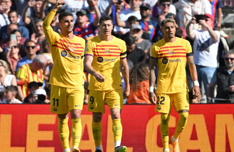 وعاد برشلونة إلى سكة الانتصارات بعد تعادلين سلبيين مخيبين أمام جيرونا وخيتافي، واستعاد فارق النقاط الـ11 التي تفصله عن غريمه التقليدي ومطارده المباشر ريال مدريد حامل اللقب الموسم الماضي والفائز على ضيفه سلتا فيغو 2-صفر السبت.