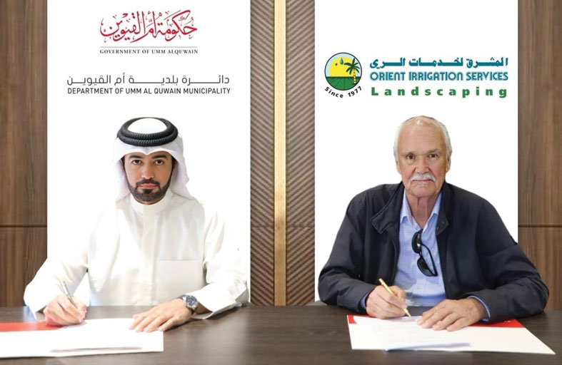بلدية أم القيوين توقع اتفاقية لصيانة المسطحات الخضراء
