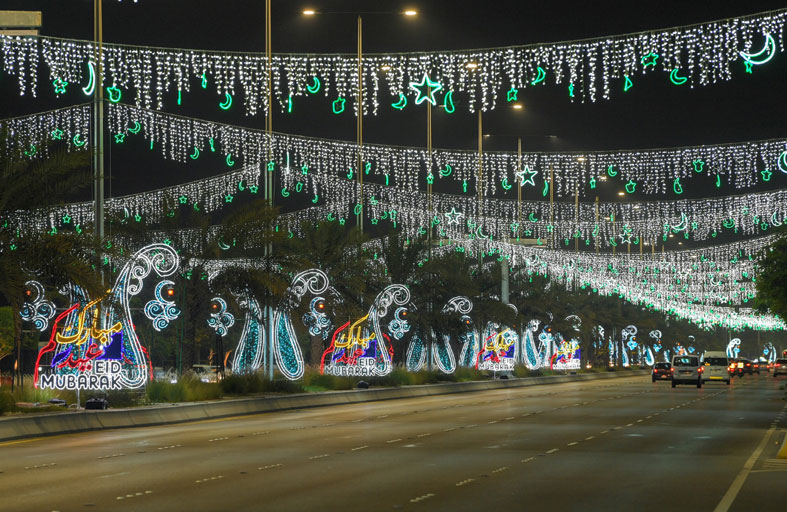 بلدية مدينة أبوظبي تزين آلاف التشكيلات المضيئة بعبارات المعايدة والتهنئة احتفاءً بعيد الفطر السعيد