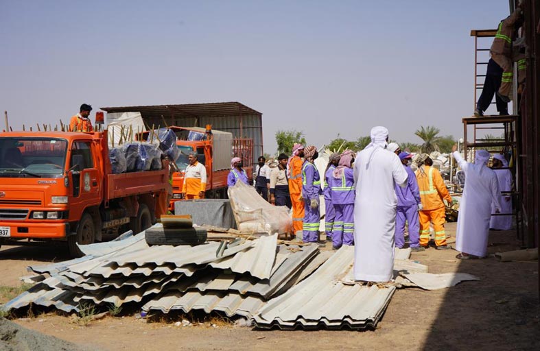 وأوضح علي مصبح الطنيجي مدير بلدية مدينة الذيد أن البلدية نفذت حملة مكثفة على المزارع التابعة للمدينة للتأكد من إتباع أصحابها للقوانين والقرارات الخاصة باستخدام الأراضي الزراعية، وتمكنت البلدية من مداهمة مزرعة محوّلة بالكامل إلى موقع صناعي ومستودع لتخزين المخلفات المنزلية والأثاث ومعدات صناعية، وبعد استيفاء جميع الإنذارات الخاصة باستغلال الأراضي قامت البلدية بدخول الموقع بإذن النيابة العامة وإزالة المخالفات القائمة فيها.