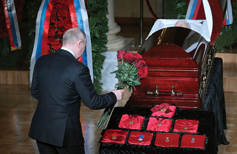 أشاد الرئيس الروسي فلاديمير بوتين الجمعة بالسياسي القومي المتطرف فلاديمير جيرينوفسكي بوضع باقة من الورد الأحمر عند نعشه خلال جنازته في موسكو. أعلنت وفاة جيرينوفسكي عن عمر ناهز 75 عاما الأربعاء، وهو معارض لكنه ليس مناهضا لبوتين، وكان شخصية رئيسية على الساحة السياسية الروسية منذ انهيار الاتحاد السوفياتي عام 1991.