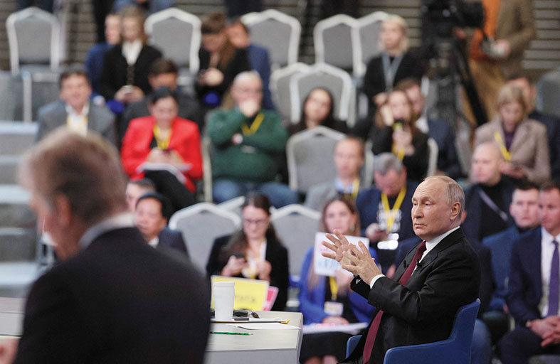 وصرح في مؤتمره الصحفي السنوي بموسكو سيكون هناك سلام عندما نحقق أهدافنا.. إنها لا تتغير.. سأذكركم بما تحدثنا عنه: استئصال النازيّة ونزع سلاح أوكرانيا وحيادها.