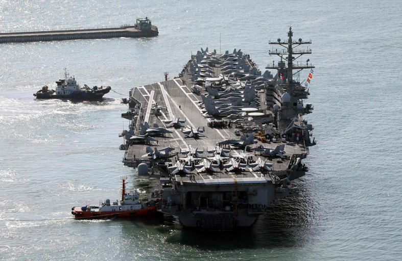 ووصلت حاملة الطائرات الأميركية العاملة بالطاقة النووية إلى ميناء بوسان (جنوب)، بعدما أجرت كوريا الجنوبية واليابان مناورات بحرية مشتركة على مدى يومين هذا الأسبوع.