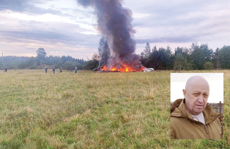 أفادت وكالات الأنباء الروسية أنّ طائرة ركّاب خاصّة تحطّمت الأربعاء أثناء رحلة داخلية ممّا أسفر عن مقتل كلّ من كان على متنها، وعددهم 10 أشخاص قد يكون أحدهم زعيم مجموعة فاغنر المسلّحة يفغيني بريغوجين لأنّ اسمه كان مدرجاً على قائمة ركّابها.