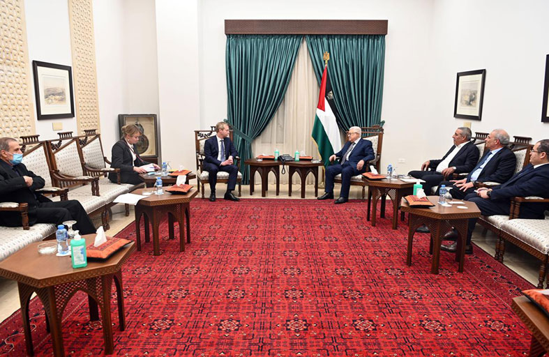 وجاء ذلك لدى استقبال عباس في مدينة رام الله مبعوث الاتحاد الأوروبي للسلام في الشرق الأوسط سفين كوبمانز، بحضور ممثل الاتحاد الأوروبي لدى فلسطين سفين كون فون، بحسب وكالة الأنباء الفلسطينية الرسمية.